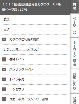 カタログの目次からページを探すことができます。目次は階層構造になっています。