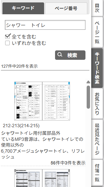 指定したキーワードが掲載されているページを探すことができます。スペース区切りで複数キーワードを指定することで絞り込み検索も可能です。
