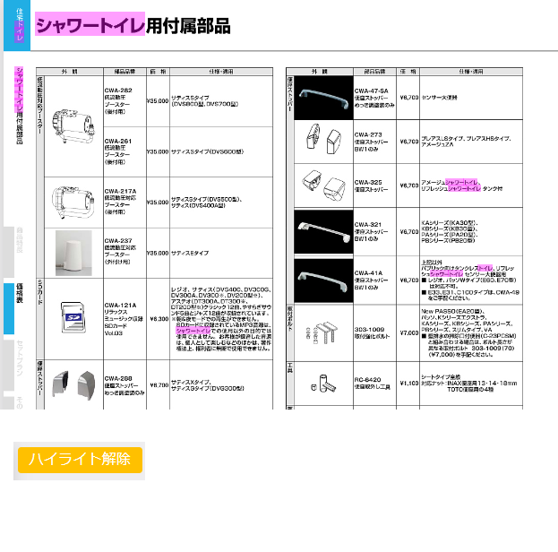 検索にヒットした文字をハイライト表示します。ハイライトは「ハイライト解除ボタン」で解除することができます。