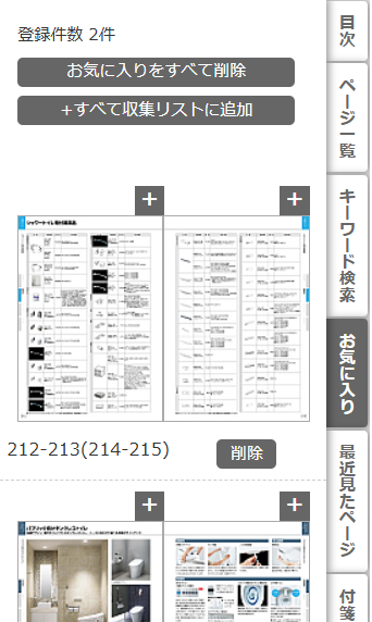 気になったページを左下図「お気に入りに追加」ボタンから簡単に保存ができます。同一のパソコンからいつでも閲覧が可能です。カタログ毎での記憶となり、他のカタログと同時にお気に入り登録することはできません。なお、同一のパソコンに保存されますので、他パソコンから閲覧する際はお気に入りページとして登録されていません。