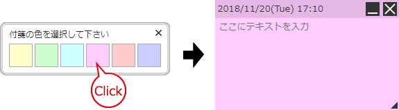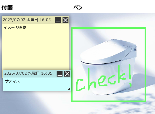 表示されているページに選んだ色の付箋を追加し、メモを書くことができます。付箋のサイズは自由に変えることができます。