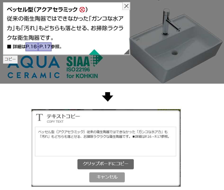 エリアを選択すると、選択範囲に含まれる文言がテキストとして抽出されます。
